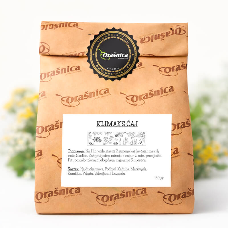 Menopauza nije kraj – to je nova faza života koja traži malo više brige, razumijevanja i nježnosti prema sebi. Klimaks čaj iz Orašnice pažljivo je osmišljena biljna mješavina koja pruža prirodnu podršku ženama u tom osjetljivom periodu – bez hormona i bez agresivnih sastojaka.