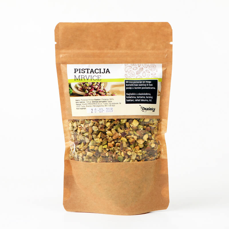 Zaokruži svoju kulinarsku avanturu s ovim orijentalnim dodatkom. Učini svoju korpu još ukusnijom i zdravijom s mljevenom pečenom pistacijom.